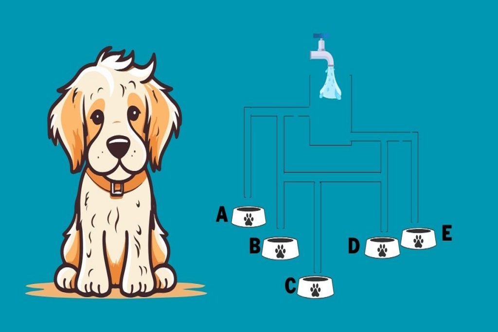 با تجزیه و تحلیل تصویری از چندین لوله منتهی به کاسه های مختلف آب، وظیفه شما این است که بفهمید کدام کاسه برای یک سگ تشنه مشتاقانه پر می شود.