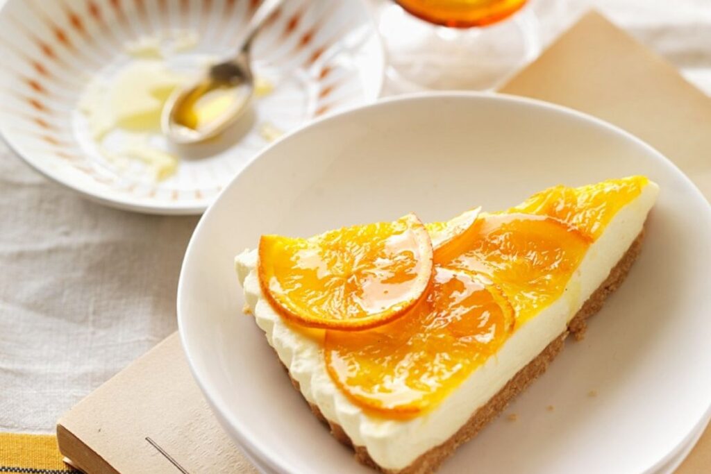 مرحله آخر: چیز کیک نارنگی را تزیین و سرو کنید