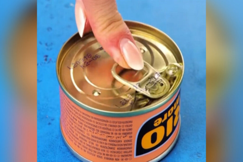مانند در بازکن قوطی، کل دور تا دور قوطی را سوراخ کنید. حالا درب باید شل شود. سپس نوک چاقو را به یکی از سوراخها وارد کنید و در آن را به آرامی بکشید.