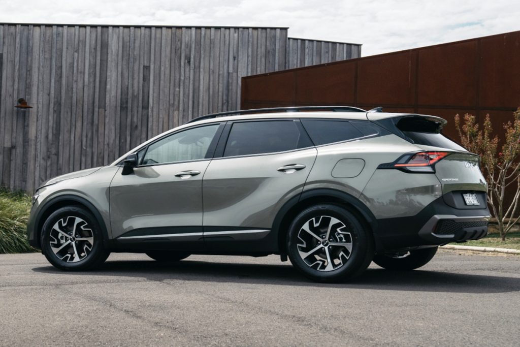 مشابه بسیاری دیگر کراساورهای کوچک و اندازه متوسط دنیا، قطعات پلاستیمی سیاه در نمای جانبی اسپورتیج هم دیده میشوند. این ادوات، قاب گلگیر، رکابها، پنجره و حتی آینه بغل نسخههای پایه را تشکیل میدهند. خطوط روی بدنه نیز، حسابشده و کمعمق هستند. اسپورتیج با رینگ ۱۸ اینچ آلومینیوم و تایر ۲۳۵ میلیمتر در غالب کشورهای دنیا فروخته میشود.